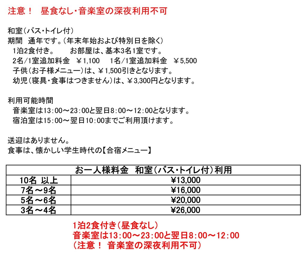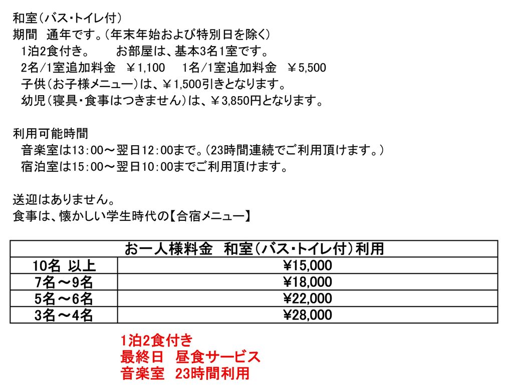 大好評のおやじバンドプラン 懐かしの名機を使った「大人の合宿 おやじバンドプラン」で、昔の仲間と思いっきり演奏してみませんか? 奥様もお子様も一緒に楽しんでください。 おやじバンドプラン その1(1泊2食付き) おやじバンドプラン その2(1泊2食付き)